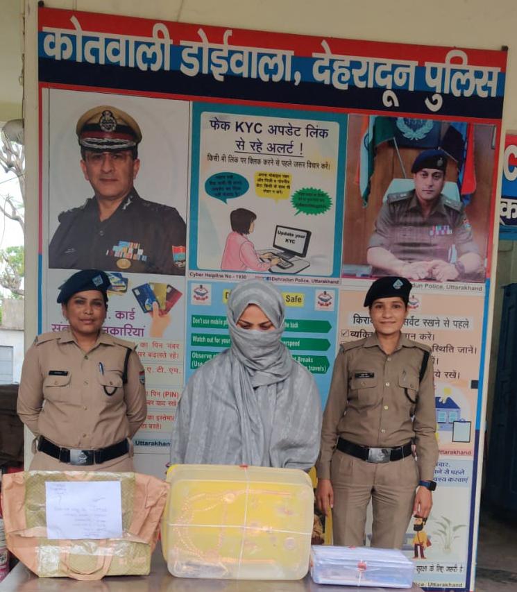 प्रभारी निरीक्षक प्रदीप कुमार राणा के नेतृत्व में पुलिस टीम ने कार्रवाई करते हुए गुलअफशा (28) निवासी लोहियानगर, ब्रहमपुरी चौक, पटेलनगर देहरादून को गिरफ्तार किया। वह मूल रूप से नजीबाबाद (उत्तर प्रदेश) की रहने वाली है।